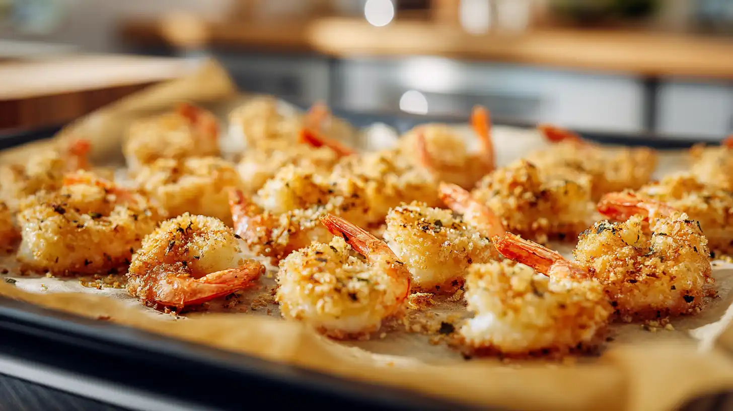 Golden, crunchy baked shrimp made with simple pantry ingredients and no frying.